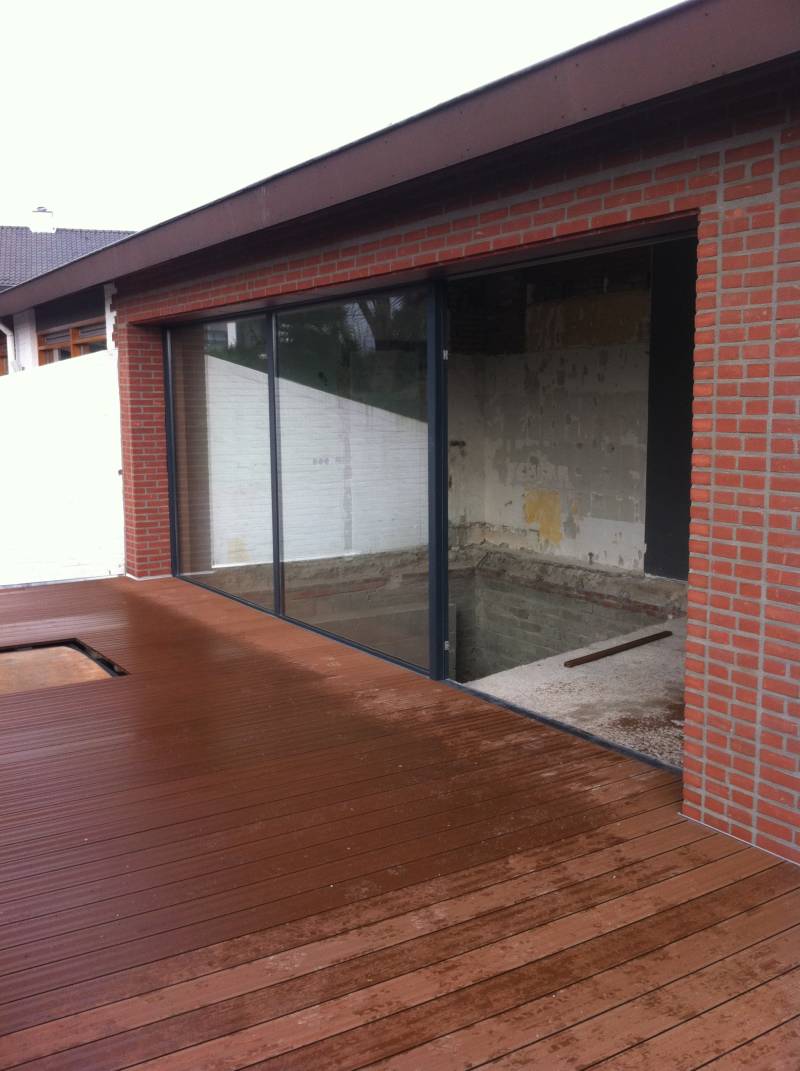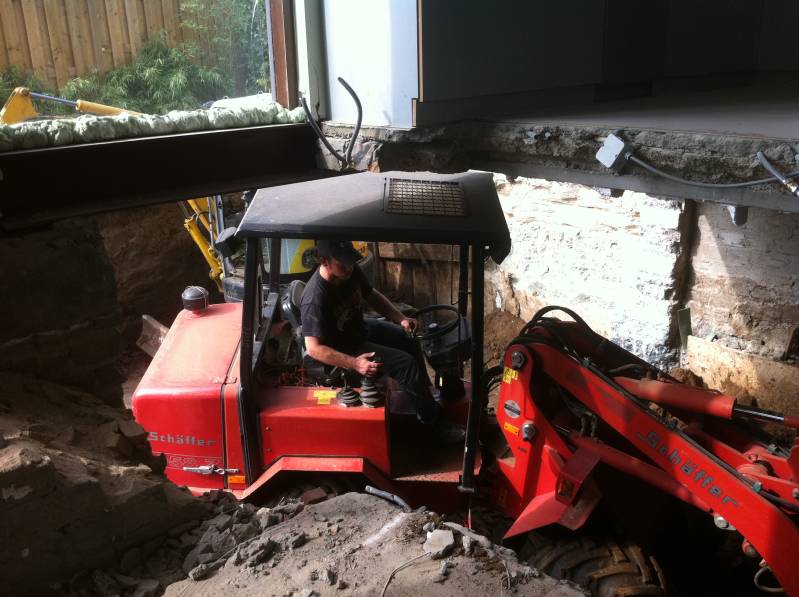 Het realiseren van een keuken, slaapkamer en garage half onder de grond en een nieuwe woonkamer met terras.